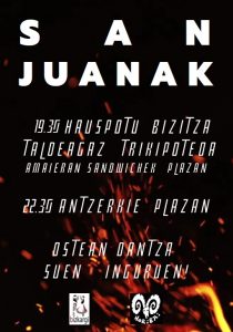 San Juan bezperako sua berriro piztuko dugu Larrabetzun, urtero legez. HoriBaik eta Bizkargik ekintza ezberdinak antolatu ditugu. Arratsaldean kalejira izango dugu arratsaldeko 19:30tan hasita HAUSPOTU BIZITZA taldearen eskutik. Gaua iritsi bitartean kantuz eta dantzaz alaituko ditugu gure kaleak eta 22:30ak aldera, HoriBaik antzerkia prestatu du herriko plazan sua pizteko. Txosna txiki bat ere izango dugu […]