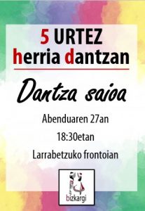 Bizkargi sortu zenetik eta gaur arteko dantzariak elkartuko gara dantza saio berezi bat eskaintzeko. Gurekin batera Zintarritik musika taldea ere egongo da. Hainbat sorpresa prestatu ditugu egun honetako saiorako. Ezin duzu galdu.