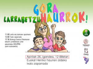 Larrabetzuko udalak, Txinpasmendi guraso elkarteak, Bizkargi dantza elkarteak eta Oin Herrik ekitaldia berezi antulatu dugu egun honetarako. Itxialdi honetan Euskal Herriko umeak omentzeko.